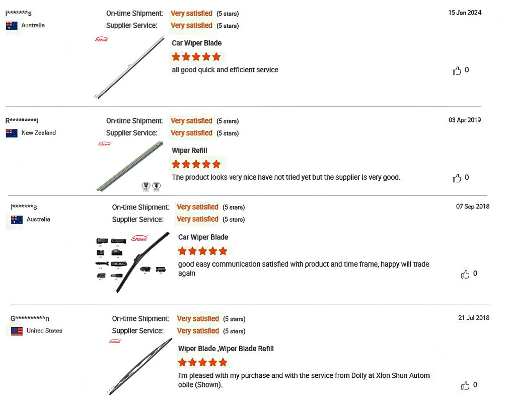 High quality ,reasonable price ,punctual delivery and good service make our company grow steadily.We are one of the most professional manufacturers and exporters of wiper blades in China.Our growth needs your continuous support.We sincerely hope to have opportunity to cooperate with you.Pls feel free to contact us.