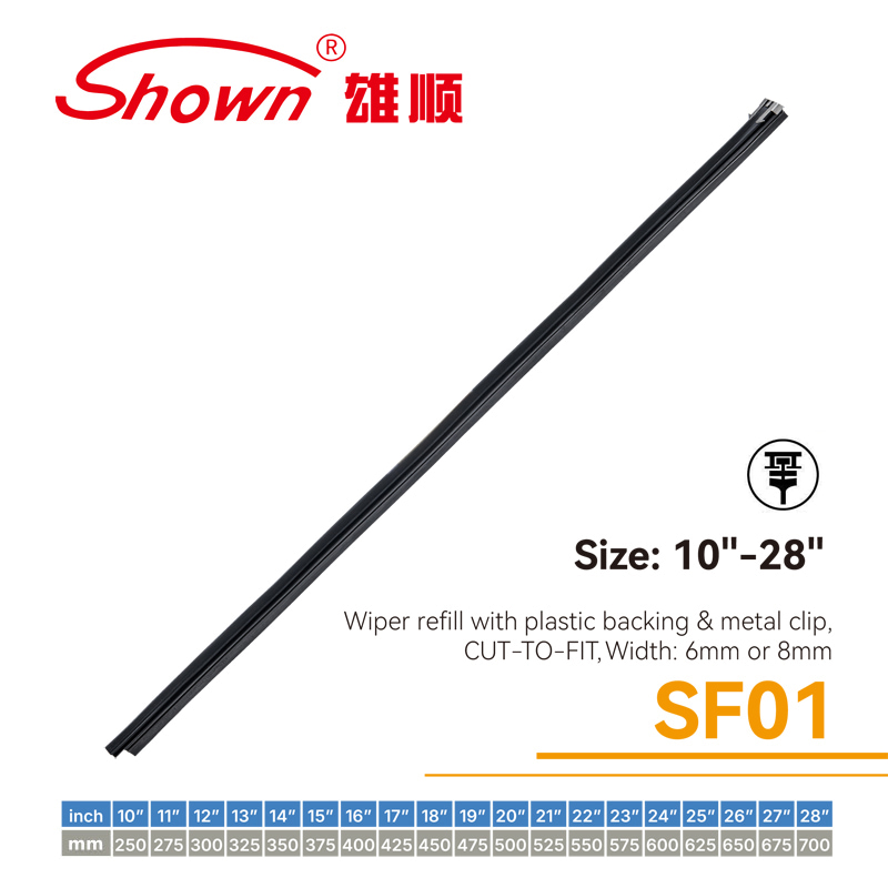 Wiper refill with plastic backing & metal clip ,cut –to –fit ,width 6mm or 8mm.